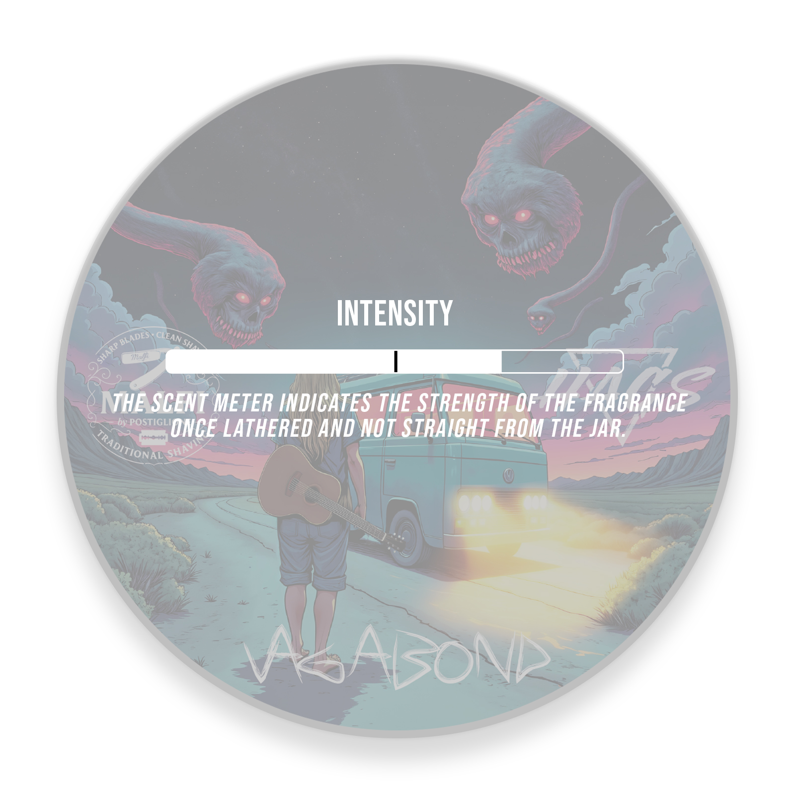 The scent-strength indicator on the bottom of the jar reflects intensity when lathered, not straight from the container.